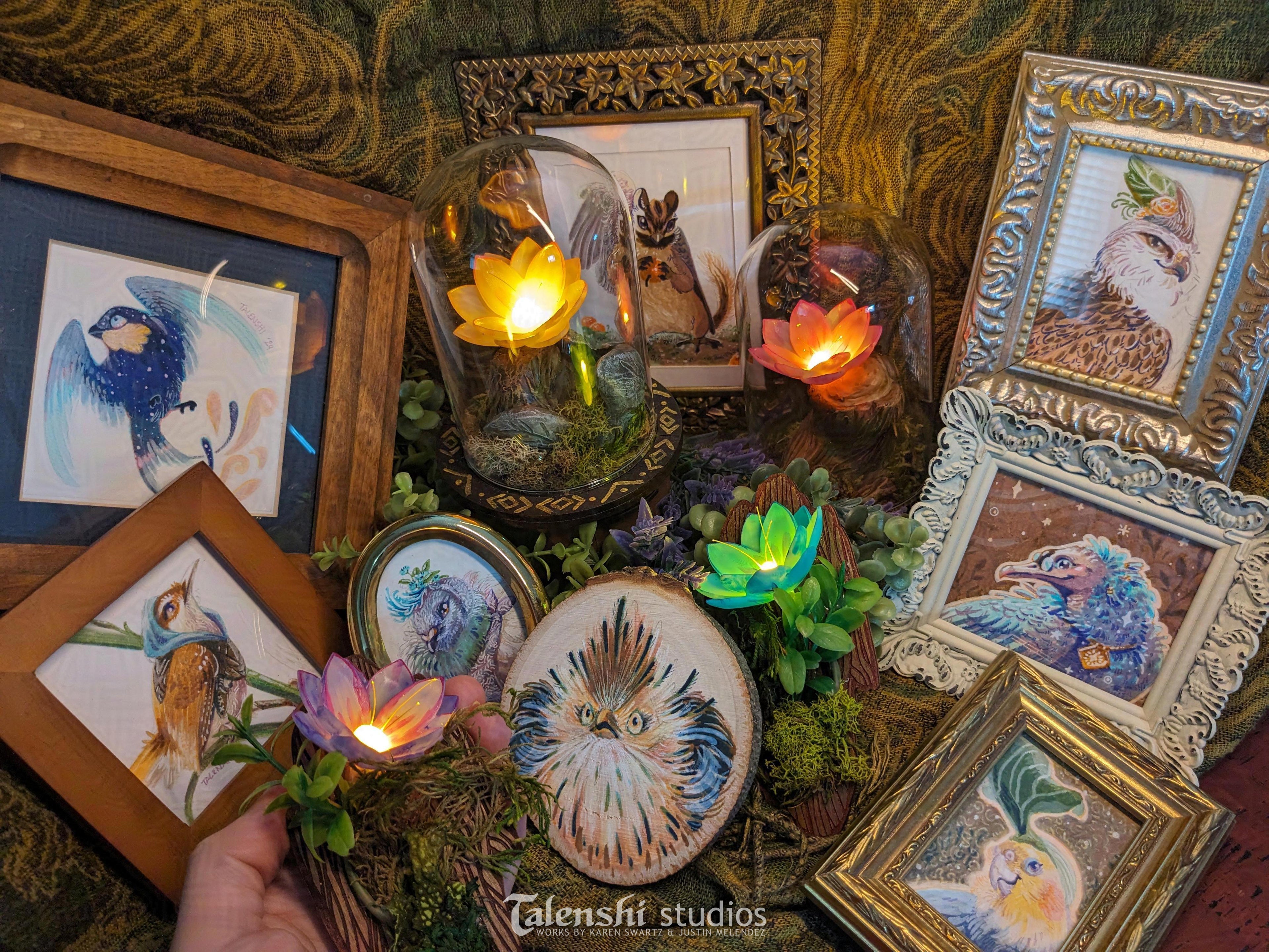 Valentine is a crafting magpie - learning every hobby she can get her hands on. If she’s not casting spells on books at Talenshi Studios; you can find her screen printing her own whimsical designs on shirts, crocheting a blanket, or sticking googly eyes to something.