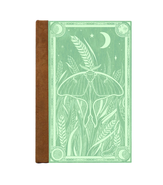 Luna Moth Magnetic Wooden Journal, Jade & Pale Lime