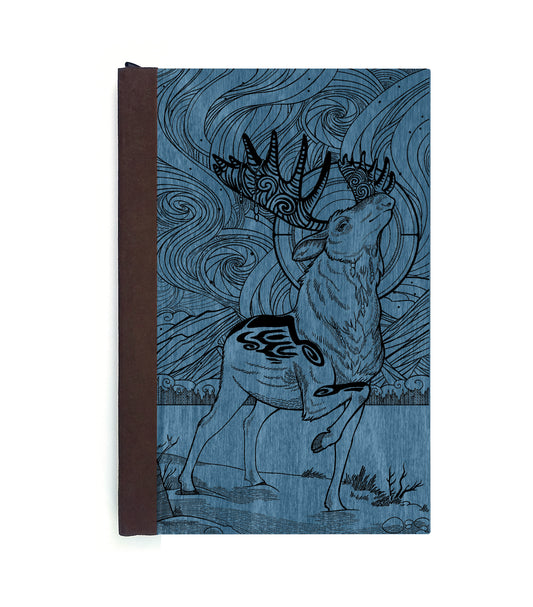 Aurora Moose Magnetic Wooden Journal, Blue & Black