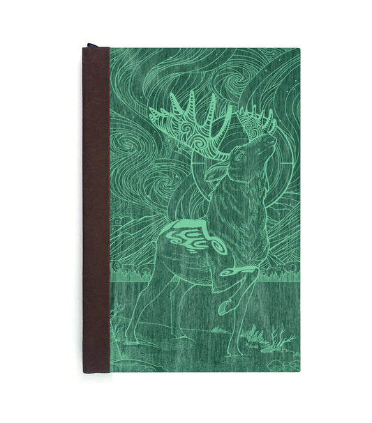 Aurora Moose Magnetic Wooden Journal, Green & Teal