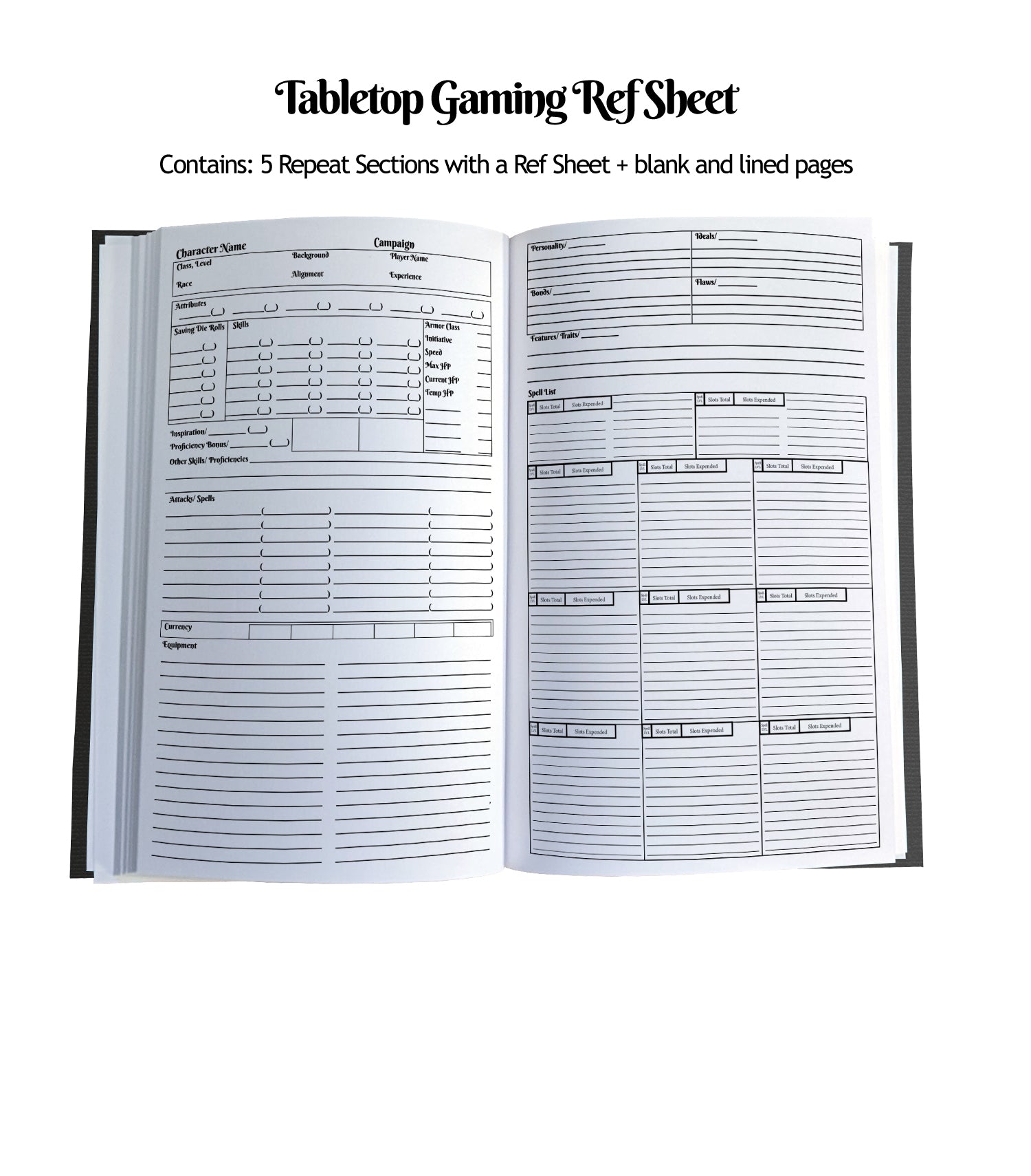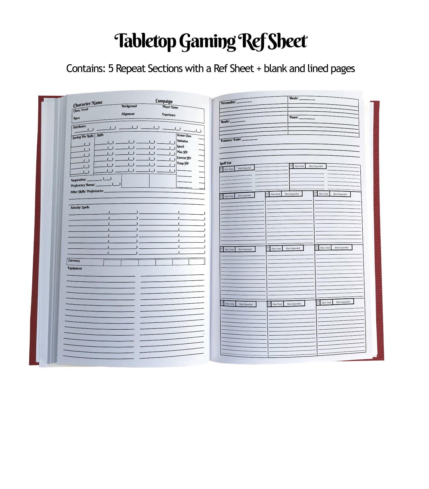 This Tabletop Game Character Sheet Refill is great for tracking your stats, spells, abilities, inventory and more in games like... ~Jails and Large Lizards.~